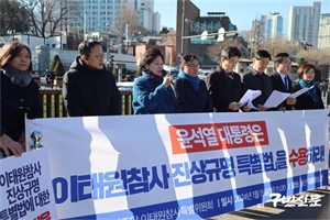 ´õºÒ¾î¹ÎÁÖ´ç ÀÌÅ¿øÂü»çƯº°À§¿øÈ¸´Â 15ÀÏ ¿ë»ê ´ëÅë·É½Ç ¾Õ¿¡¼­ ¡¸ÀÌÅ¿øÂü»ç Áø»ó±Ô¸í Ưº°¹ý¡¹ ¼ö¿ë Ã˱¸ ±âÀÚȸ°ßÀ» ¿­°í, ¡°À±¼®¿­ ´ëÅë·É°ú Á¤ºÎ°¡ Á°í¿ì¸é...