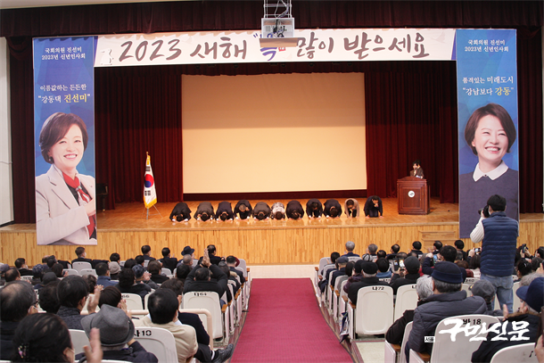 dz¿ä¿Í ÁöÇý¸¦ »ó¡ÇÏ´Â °è¹¦³â »õÇØÀÇ ½ÃÀÛÀ» Áֹεé°ú µÎ¼ÕÀ» ¸¶ÁÖÀâ°í Èñ¸ÁÂù ¹ß°ÉÀ½À» ³»µó´Â Áø¼±¹Ì ±¹È¸ÀÇ¿ø(°­µ¿°©)ÀÇ 2023³âµµ ½Å³âÀλçȸ°¡ 14ÀÏ °­µ¿±¸¹Îȸ°ü¿¡¼­ ¿­·È´Ù.