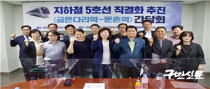 Áø¼±¹Ì ±¹È¸ÀÇ¿ø(´õºÒ¾î¹ÎÁÖ´ç, ¼­¿ï °­µ¿°©)Àº ¿À´Ã ±¹È¸ ÀÇ¿øÈ¸°ü¿¡¼­¡®ÁöÇÏö 5È£¼± Á÷°áÈ­ ÃßÁø(±ÁÀº´Ù¸®¿ª~µÐÃÌ¿ª) °£´ãȸ¡¯¸¦ ÁÖÃÖÇß´Ù. ÁöÇÏö 5È£¼± Á÷...
