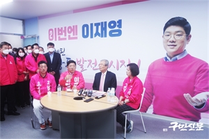 3¿ù 30ÀÏ(¿ù) ¿ÀÈÄ 1½Ã 30ºÐ ±èÁ¾ÀÎ ¹Ì·¡ÅëÇÕ´ç ÃѰý¼±°Å´ëÃ¥À§¿øÀåÀÌ °­µ¿±¸(À») ÀÌÀ翵 ¼±°ÅÄ·ÇÁ »ç¹«¼Ò¸¦ ÀÀ¿ø¡¤°Ý·Á ¹æ¹®Çß´Ù. ´ç °ø½Ä ÀÏÁ¤À¸·Î ±è ...