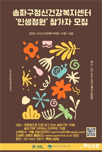 ¼ÛÆÄ±¸(±¸Ã»Àå ¼­°­¼®)°¡ À§Å¹ ¿î¿µÇÏ´Â ¼ÛÆÄ±¸Á¤½Å°Ç°­º¹Áö¼¾ÅÍ(¼¾ÅÍÀå ÀÌÁß¼±)°¡ ¿À´Â 8¿ù 9ÀϱîÁö ¡®ÀλýÁ¤¿ø¡¯ »ç¾÷ Âü°¡ÀÚ 20¸íÀ» ¸ðÁýÇÑ´Ù. Áö³­ 6¿ù,...