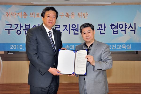 ¼ÛÆÄº¸°Ç¼Ò ±èÀα¹ ¼ÒÀå(¿ì)°ú ¼ÛÆÄ±¸Ä¡°úÀÇ»çȸ Á¤½Â¿ì ȸÀåÀÌ Çù¾à¼­¸¦ ±³È¯Çϰí ÀÖ´Ù.