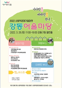 °­µ¿±¸(±¸Ã»Àå ÀÌÁ¤ÈÆ)°¡ 26ÀÏ ±¸Ã» ¾Õ ¿­¸°¶ã¿¡¼­ ¿ì¼öÇÑ »çȸÀû±â¾÷ÀÇ ÆÇ·Î¸¦ ¿­¾îÁÖ´Â ¡®°­µ¿¾î¿ï¸¶´ç¡¯À» °³ÃÖÇÑ´Ù. ¿ÀÀü 11½ÃºÎÅÍ ¿ÀÈÄ 4½Ã±îÁö ¿­¸®´Â ...