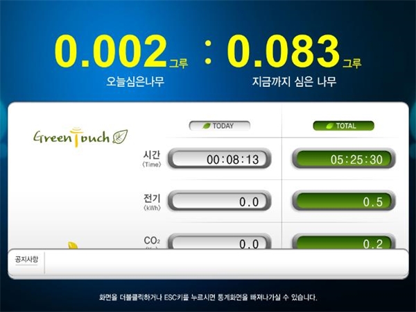 ¼ÛÆÄ±¸(±¸Ã»Àå ¹ÚÃáÈñ)¿¡¼´Â »ç¹«½Ç Àü±â»ç¿ëÀÇ ¸¹Àº ºÎºÐÀ» Â÷ÁöÇÏ´Â ÄÄÇ»ÅÍÀÇ È¿À²ÀûÀÎ Àü±â Àý¾àÀ» À§ÇØ Àü ºÎ¼ ÄÄÇ»ÅÍ¿¡ ±×¸°ÅÍÄ¡(Green Touch) ÇÁ·Î±×·¥ ¼³Ä¡¸¦ ±ÇÀå ÁßÀÌ´Ù.