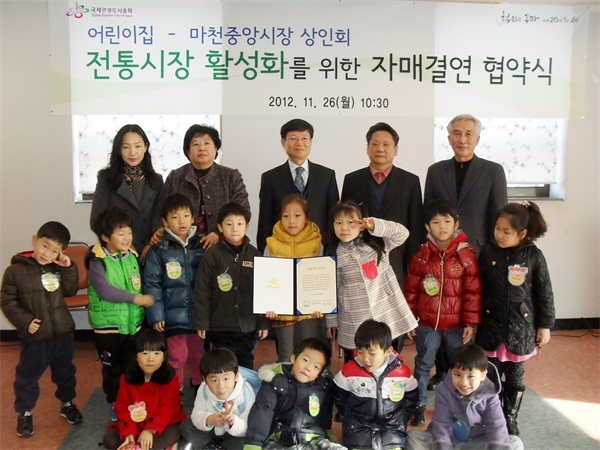 ¡ã26ÀÏ ¸¶Ãµ2µ¿ Áֹμ¾ÅÍ È¸Àǽǿ¡¼ ¿¸° ¡®¾î¸°ÀÌÁý-¸¶ÃµÁß¾Ó½ÃÀå»óÀÎȸ¡¯°£ ÀüÅë½ÃÀå Ȱ¼ºÈ¸¦ À§ÇÑ ÀڸŰῬ Çù¾à½Ä ÈÄ ±â³äÃÔ¿µ