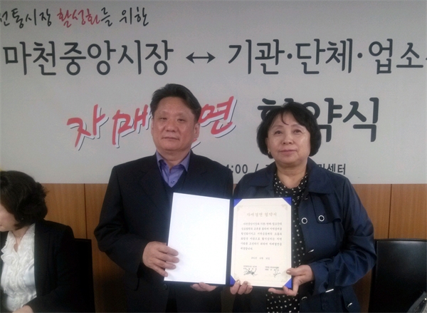 ¡ã30ÀÏ ¼ÛÆÄ±¸ °Å¿©1µ¿ Áֹμ¾ÅÍ 2Ãþ¿¡¼ '¸¶ÃµÁß¾Ó½ÃÀå°ú °Å¿©µ¿ Á÷´É´Üü µî°ú ÀڸŰῬ Çù¾à½Ä'ÀÌ ¿·Á À¯ÀçÈÆ ¸¶ÃµÁß¾Ó½ÃÀå »óÀÎȸÀå (¿ÞÂÊ)°ú À¯È¿¼ø °Å¿©1µ¿ ÁÖ¹ÎÀÚÄ¡À§¿øÀå(¿À¸¥ÂÊ)ÀÌ Çù¾à¼¸¦ ±³È¯Çϰí ÀÖ´Ù.