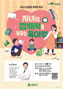 ¼ÛÆÄ±¸(±¸Ã»Àå ¼­°­¼®)°¡ 12¿ù 1ÀÏ 10½Ã ¼ÛÆÄ±¸Ã» ´ë°­´ç¿¡¼­ Á¤½Å°Ç°­ÀÇÇаú Àü¹®ÀÇÀÌÀÚ µÎ³ú±³À° Àü¹®°¡ÀÎ ³ë±Ô½Ä ¹Ú»ç°¡ ÁøÇàÇÏ´Â ÇÐºÎ¸ð Æ¯°­À» °³ÃÖÇÑ´Ù°í ...