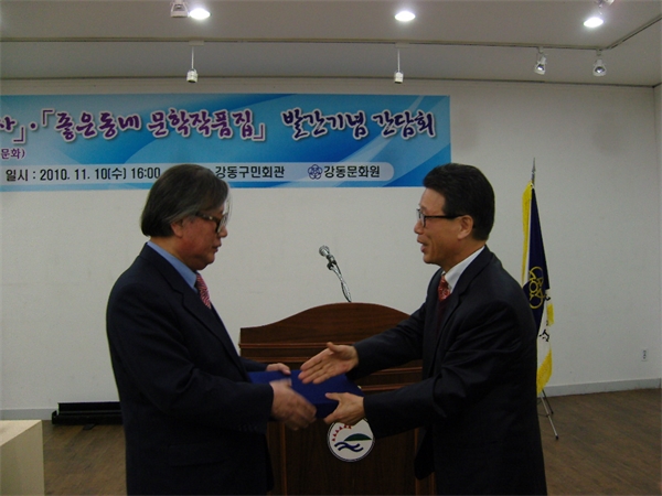 ±èº´°ü °µ¿¹®ÀÎȸÀåÀº °£´ãȸ¿¡¼ ÀÌ¿ø´Þ ¿øÀå¿¡°Ô ¡®°µ¿¹®È¿ø Á¦2´ë ¿øÀåÀ¸·Î¼ °è°£Áö ¡¸ÁÁÀºµ¿³×¡¹¸¦ â°£ÇÏ¿© Áö¿ª¹®È ¹ßÀü°ú ¿¹¼úÀε鿡°Ô ÀÛǰ¹ßÇ¥ÀÇ ±âȸ¸¦ ¸¶·ÃÇØ ÁÖ¾úÀ¸¸ç ƯÈ÷ Áö³ 3³â°£ ¡¸ÁÁÀºµ¿³×¡¹¿¡ ±â°íÇÑ ¹®ÀεéÀÇ ±ÛÀ» ¸ð¾Æ ¡¸ÁÁÀºµ¿³× ¹®ÇÐÀÛǰÁý¡¹À» ¹ß°£ÇÏ¿© ¹®ÀεéÀÇ ÀÚ±à½ÉÀ» Å©°Ô ³ô¿© ÁÖ¾ú´Ù¡¯°í °¨»çÆÐ¸¦ ÁÖ¾î °£´ãȸ ºÐÀ§±â¸¦ ÇÑÃþ ´õ ³ô¿´´Ù.