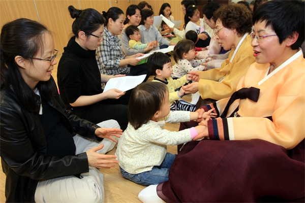 1ÀÏ ¿ÀÀü ¼ÛÆÄ±¸ ¼ÛÆÄ¾î¸°À̵µ¼­°ü¿¡¼­ ÀüÅëÇѺ¹À» °ö°Ô Â÷·ÁÀÔÀº ÇÒ¸Ó´Ï-ÇҾƹöÁöµéÀÌ 12°³¿ù ÀüÈÄÀÇ ¿µÀ¯¾Æ¸¦ µ¿¹ÝÇÑ ¾ö¸¶µé¿¡°Ô Àü·¡ÀÚÀå°¡¸¦ µé·ÁÁÖ°í ÀÖ´Ù.