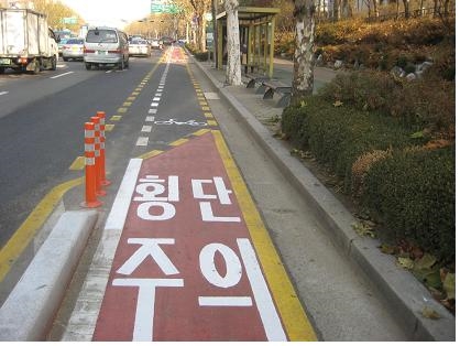 À̹ø¿¡ Á¶¼ºµÈ ÀÚÀü°Å Àü¿ëµµ·Î´Â ³²ºÎ¼øÈ¯·Î źõ±³»ç°Å¸®¿¡¼ µÐÃÌ»ç°Å¸® ¾ç¹æÇâ 8.4km ±¸°£ÀÌ´Ù. 10ÀÏ¿¡´Â ±× Áß ¿Ã¸²ÇȰø¿ø¿ª¿¡¼ °¡¶ô½ÃÀå»ç°Å¸®±îÁöÀÇ 5.4km ±¸°£ÀÌ ¿ì¼± °³ÅëµÆ´Ù. ƯÈ÷ ÀÌ ±¸°£Àº Àεµ°¡ ¾Æ´Ñ Â÷µµ¸¦ ÀÌ¿ëÇÑ Â÷·ÎÆø °¨¼Ò(Road-Diet)¹æ½ÄÀ¸·Î Á¶¼ºµÇ¾úÀ¸¸ç ÀÌ ¹æ½ÄÀº ±âÁ¸ Â÷¼±¼ö¸¦ ±×´ë·Î Çϰí Â÷·ÎÆøÀ» ÁÙ¿© ÀÚÀü°Å Àü¿ëµµ·Î¸¦ È®º¸ÇÑ °ÍÀÌ´Ù. ±×¿¡ µû¶ó ¹ß»ýÇÒ ¼ö ÀÖ´Â ¾ÈÀü»ç°í¸¦ ¹Ì¿¬¿¡ ¹æÁöÇϱâ À§ÇØ ÀÌ ±¸°£¿¡´Â ÀÚÀü°Å µµ·Î¿Í Â÷µµ »çÀÌ¿¡ °æ°è¼® ¹× ¹æÈ£¿ïŸ¸®°¡ ¼³Ä¡µÆ´Ù. ¼ÛÆÄ±¸´Â À̹ø °ø»ç¸¦ À§ÇØ ¼¿ï½Ã µðÀÚÀνÉÀÇÀ§¿øÈ¸¿Í ÀåÀå 5ÁÖ¿¡ °ÉÄ£ ÇùÀǸ¦ °ÅÄ¡´Â µî ¾ÈÀü¼º°ú µðÀÚÀÎ ¸é¿¡¼ Áö±Ý±îÁöÀÇ ÀÚÀü°Å µµ·Î¿Í ºñ±³¸¦ °ÅºÎÇÏ´Â ÃÖ°í¼öÁØÀÇ ÀÚÀü°Å µµ·Î¸¦ ±¸ÇöÇß´Ù´Â Æò°¡¸¦ ¹Þ°í ÀÖ´Ù.