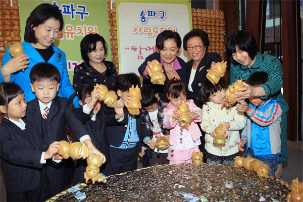ÀúÃàÀÇ ³¯À» ÇÏ·ç ¾ÕµÐ 26ÀÏ ¼­¿ï ¼ÛÆÄ±¸Ã» 1Ãþ ·Îºñ¿¡¼­ ÁøÇàµÈ '»ç¶ûÀÇ Àú±ÝÅë Àü´Þ½Ä'¿¡¼­ ¼ÛÆÄ±¸ °ü³» 41°³ »ç¸³À¯Ä¡¿ø»ý 4,000¿©¸íÀÌ 1³â°£ ¸ðÀº µ¿ÀüÀÌ ¼öºÏÇÏ°Ô ½×¿© µ¿Àü¹çÀ» ÀÌ·ç°í ÀÖ´Ù.