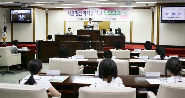 ÀÇȸ±³½ÇÀº Çлýµé¿¡°Ô ¹ÎÁÖÀû ÀÇ»ç°áÁ¤°úÁ¤°ú ÀÇȸÀÇ ¿ªÇÒÀ» ¾Ë¸®°íÀÚ ¼ÛÆÄ±¸ÀÇȸ¿¡¼ ¸Å³â °³ÃÖÇÏ´Â Çà»çÀ̸ç, À̹ø ÀÇȸ±³½Ç¿¡´Â Á¤½Å¿©ÀÚÁßÇб³ ÇлýµéÀÌ Âü°¡ÇÏ¿´´Ù.