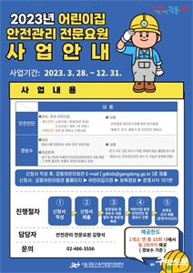 °­µ¿±¸(À̼öÈñ ±¸Ã»Àå)´Â ¾ÈÀü»ç°í¸¦ »çÀü ¿¹¹æÇÏ¿© º¸´Ù ¾ÈÀüÇÑ º¸À°È¯°æÀ» Áö¿øÇϰíÀÚ ¾î¸°ÀÌÁý ¾ÈÀüÁø´Ü ¹× °æº¸¼ö¸¦ Áö¿øÇÏ´Â ¡®¾î¸°ÀÌÁý ¾ÈÀü°ü¸® Àü¹®¿ä¿ø¡¯ ...