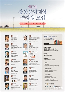 °­µ¿¹®È­¿øÀÌ Á¦27±â °­µ¿¹®È­´ëÇÐ ¼ö°­»ýÀ» ¸ðÁýÇÑ´Ù. ´Ù¾çÇÑ °­ÁÂ¿Í ¹®È­Å½¹æÀ» ÅëÇØ Áö¿ª¹®È­ ¹ßÀüÀ» ¼±µµÇÏ´Â °­µ¿¹®È­´ëÇÐÀº Áö³­ 26±â±îÁö 1,673¸íÀÇ ...