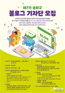 ¼ÛÆÄ±¸(±¸Ã»Àå ¼°¼®)´Â ±¸Á¤ ¼Ò½ÄÀ» ±¸¹Î ¸ñ¼Ò¸®·Î »ý»ýÇÏ°Ô Àü´ÞÇÒ ¡¸Á¦7±â ¼ÛÆÄ±¸ ºí·Î±×±âÀÚ´Ü¡¹À» 2¿ù 22ÀÏ(¼ö)±îÁö ¸ðÁýÇÑ´Ù°í ¹àÇû´Ù. ¡®¼ÛÆÄ±¸ ºí·Î...