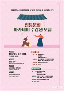 ¼ÛÆÄ±¸(±¸Ã»Àå ¼­°­¼®)°¡ ³»³â 1¿ùºÎÅÍ 3¿ù±îÁö ¼ÛÆÄ·± ±³À°¼¾ÅÍ Ç³³³¿¡¼­ 2023³â ÀüÅ빮ȭ ¾ÆÄ«µ¥¹Ì 1±â¸¦ ¿î¿µÇÑ´Ù. ¡®ÀüÅ빮ȭ ¾ÆÄ«µ¥¹Ì¡¯´Â ±¸¹ÎµéÀ» À§...