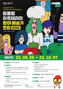 °­µ¿±¸(À̼öÈñ ±¸Ã»Àå)´Â 10¿ù 7ÀÏ(±Ý)±îÁö ¡®°­µ¿Çü ¾ÆÆ®Å׸®¾î¡¯ »ç¾÷¿¡ Âü¿©ÇÒ Á¡Æ÷¿Í û³â ¿¹¼ú°¡¸¦ °ø°³ ¸ðÁýÇϰí ÀÖ´Ù°í ¹àÇû´Ù. ¾ÆÆ®Å׸®¾î »ç¾÷Àº ¾Æ...