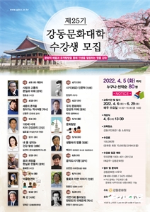 °­µ¿¹®È­¿øÀÌ Á¦25±â °­µ¿¹®È­´ëÇÐ ¼ö°­»ýÀ» ¸ðÁýÇÑ´Ù. ´Ù¾çÇÑ °­ÁÂ¿Í ¹®È­Å½¹æÀ» ÅëÇØ Áö¿ª¹®È­ ¹ßÀüÀ» ¼±µµÇÏ´Â °­µ¿¹®È­´ëÇÐÀº Áö³­ 24±â±îÁö 1500¿© ¸íÀÇ...