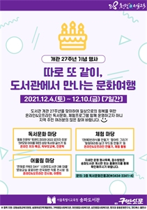 ¼­¿ïƯº°½Ã±³À°Ã»¼ÛÆÄµµ¼­°ü(°üÀå ÀÌ¿¬ÁÖ)Àº °³°ü 27Áֳ⠱â³ä ÃàÁ¦ÀÎ ¡º¡®µû·Î ¶Ç °°ÀÌ¡¯ µµ¼­°ü¿¡¼­ ¸¸³ª´Â ¹®È­¿©Çà¡»À» 12.4.(Åä) ~ 12.10.(±Ý)...