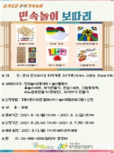 °­µ¿±¸(ÀÌÁ¤ÈÆ ±¸Ã»Àå)°¡ Ãß¼®¸íÀýÀ» ¸Â¾Æ ¿µÀ¯¾Æ°¡ ÀÖ´Â Ãë¾à°èÃþ °¡Á·À» ´ë»óÀ¸·Î Áý¿¡¼­ Áñ±æ ¼ö ÀÖ´Â ¡®¹Î¼Ó³îÀÌ º¸µû¸®¡¯¸¦ Á¦°øÇÑ´Ù. ¡®¹Î¼Ó³îÀÌ º¸µû¸®¡¯´Â...