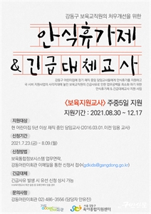 °µ¿±¸(±¸Ã»Àå ÀÌÁ¤ÈÆ)°¡ ¿À´Â 8¿ù 9ÀϱîÁö Àå±âÀçÁ÷ ÁßÀÎ ¾î¸°ÀÌÁý ±³Á÷¿øÀ» ´ë»óÀ¸·Î ¡®¾È½ÄÈÞ°¡Á¦¡¯ Áö¿ø ½ÅûÀ» ¹Þ´Â´Ù°í ¹àÇû´Ù. ¡®¾È½ÄÈÞ°¡Á¦¡¯´Â º¸À°°ø¹é...