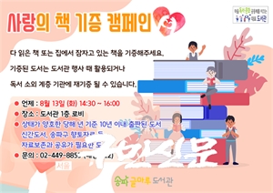 ¼ÛÆÄ±¸½Ã¼³°ü¸®°ø´Ü(ÀÌ»çÀå ¹Ú¿ë¸ð) ¼ÛÆÄ±Û¸¶·çµµ¼­°ü¿¡¼­´Â ¿À´Â 8¿ù 13ÀÏ Áö¿ªÁֹΰú ÇÔ²²ÇÏ´Â »ç¶ûÀÇ Ã¥ ±âÁõ Ä·ÆäÀÎÀ» ¿î¿µ ÇÑ´Ù°í ¹àÇû´Ù. »ç¶ûÀÇ Ã¥ ±âÁõ...