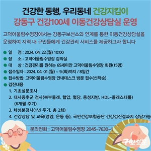 °­µ¿±¸µµ½Ã°ü¸®°ø´Ü(ÀÌ»çÀå ¿À¹ÌÇý)ÀÌ ¿î¿µÇÏ´Â °í´ö¾î¿ï¸²¼ö¿µÀåÀº °Ç°­°ü¸®¸¦ Èñ¸ÁÇÏ´Â 65¼¼ ¹Ì¸¸ÀÇ È¸¿øµéÀ» ´ë»óÀ¸·Î ¡®¾î¿ï¸² °Ç°­ 100¼¼ À̵¿°Ç°­ »ó´ã½Ç¡¯...