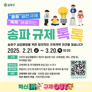¼ÛÆÄ±¸-±ÔÁ¦°³Çõ_Àǰ߼ö·Å ¼ÛÆÄ±¸(±¸Ã»Àå ¼­°­¼®)°¡ ±¸¹ÎÀ» ´ë»óÀ¸·Î ±ÔÁ¦°³Çõ¿¡ ´ëÇÑ ÀǰßÀ» ¹¯´Â ¡®¼ÛÆÄ ±ÔÁ¦ ÅåÅ塯À» ÁøÇàÇÑ´Ù. ±¸´Â ±¸¹Îµé... [±¸Á¤¼Ò½Ä] ±¸¹Î½Å¹®