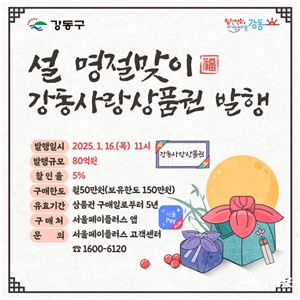°­µ¿»ç¶û»óǰ±Ç ¼³ ¸íÀý¹ßÇà °­µ¿±¸(À̼öÈñ ±¸Ã»Àå)´Â 16ÀÏ(¸ñ) 11½ÃºÎÅÍ °­µ¿»ç¶û»óǰ±Ç ÃÑ 80¾ï ¿øÀ» 5% ÇÒÀÎÇÏ¿© ÆÇ¸ÅÇÑ´Ù°í ¹àÇû´Ù.... [±¸Á¤¼Ò½Ä] ±¸¹Î½Å¹®