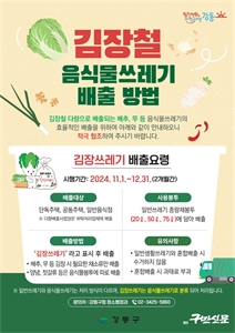 °­µ¿±¸-±èÀåö À½½Ä¹°¾²·¹±â ¹èÃâ¹æ¹ý °­µ¿±¸(À̼öÈñ ±¸Ã»Àå)´Â ±èÀåöÀÎ 11~12¿ù µÎ ´Þ°£ ±èÀå ¾²·¹±â¸¦ ÀϹݾ²·¹±â Á¾·®Á¦ºÀÅõ¿¡ ¹èÃâÇÒ ¼ö... [±¸Á¤¼Ò½Ä] ±¸¹Î½Å¹®