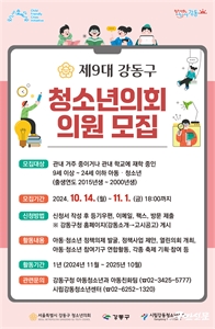 °­µ¿±¸(À̼öÈñ ±¸Ã»Àå)´Â 11¿ù 1ÀϱîÁö ¾Æµ¿°ú û¼Ò³âÀ» ´ë»óÀ¸·Î ¡®Á¦9´ë °­µ¿±¸ û¼Ò³âÀÇȸ¡¯ ÀÇ¿øÀ» ¸ðÁýÇÑ´Ù°í ¹àÇû´Ù. °ü³»¿¡ °ÅÁÖÇϰÅ... [±¸Á¤¼Ò½Ä] ±¸¹Î½Å¹®