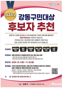 °­µ¿±¸(À̼öÈñ ±¸Ã»Àå)°¡ ¿À´Â 11¿ù 18ÀÏ(¿ù)±îÁö ¿ÃÇØ °­µ¿À» ºû³½ ¡®Á¦33´ë °­µ¿±¸¹Î´ë»ó¡¯ Èĺ¸ÀÚ¸¦ ã´Â´Ù°í ¹àÇû´Ù. ¸Å³â ±¸´Â ´Ù... [±¸Á¤¼Ò½Ä] ±¸¹Î½Å¹®