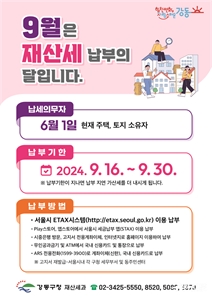 °­µ¿±¸(À̼öÈñ ±¸Ã»Àå)°¡ 2024³âµµ 9¿ù Á¤±âºÐ Àç»ê¼¼(º»¼¼) ¾à 768¾ï ¿øÀ» ºÎ°úÇß´Ù°í ¹àÇû´Ù. Àç»ê¼¼´Â °ú¼¼±âÁØÀÏ(¸Å³â 6¿ù 1ÀÏ... [±¸Á¤¼Ò½Ä] ±¸¹Î½Å¹®