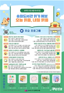 ¼ÛÆÄµµ¼­°ü µ¶¼­ÀÇ´Þ ¼­¿ïƯº°½Ã±³À°Ã»¼ÛÆÄµµ¼­°ü(°üÀå ±è¼øÈ­)Àº 9¿ù µ¶¼­ÀÇ ´ÞÀ» ¸ÂÀÌÇØ, Áö¿ªÁÖ¹ÎÀÇ µ¶¼­ÀÇ¿åÀ» °íÃëÇÏ°í µ¶¼­ÀÇ Áñ°Å¿òÀ» ¾Ë±â... [¹®È­¤ý±³À°¤ýüÀ°] ±¸¹Î½Å¹®