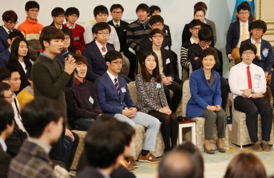 ¹Ú±ÙÇý ´ëÅë·ÉÀº 20ÀÏ ¿ÀÈÄ Ã»¿Í´ë ¿µºó°ü¿¡¼ ¿ÃÇØ ¼±Á¤µÈ ¡®´ëÅë·É°úÇÐÀåÇлý¡¯°ú ¡®±¹Á¦°úÇпø²ÇÇ¾Æµå ¼ö»óÀÚ¡¯ µî Â÷¼¼´ë âÁ¶°æÁ¦ ¸®´õ·Î ¼ºÀå ÇÒ ¹Ì·¡ °úÇÐÀÎÀç 150¿©¸íÀ» ÃÊÃ»ÇØ °Ý·ÁÇϰí, À̵éÀÌ °¡Áø ²Þ°ú µµÀüÀÇ À̾߱⸦ µè´Â ½Ã°£À» °¡Á³´Ù.