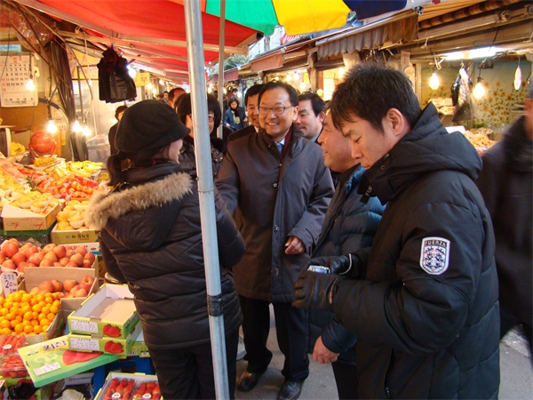 À¯ÀÏÈ£ÀÇ¿ø(Çѳª¶ó´ç ¼ÛÆÄÀ»)Àº Áö³ 12ÀÏ ¼³À» ¾ÕµÎ°í Áö¿ª±¸ ´çÁ÷ÀÚµé°ú ÇÔ²² »õ¸¶À»½ÃÀå°ú °ñ¸ñ½ÃÀå µî °ü³» ÀüÅë½ÃÀåÀ» ¹æ¹®Çß´Ù. À¯ÀÇ¿øÀº ½ÃÀå»óÀεé°ú ÀÏÀÏÀÌ ¾Ç¼ö¸¦ Çϸç Àλ縦 ³ª´« µÚ, ÀåÀ» º¸·¯ ³ª¿Â Áö¿ªÁֹεéÀÌ ´À³¢´Â Àå¹Ù±¸´Ï ¹°°¡¿¡ ´ëÇØ¼µµ Á÷Á¢ ÀǰßÀ» µé¾ú´Ù.