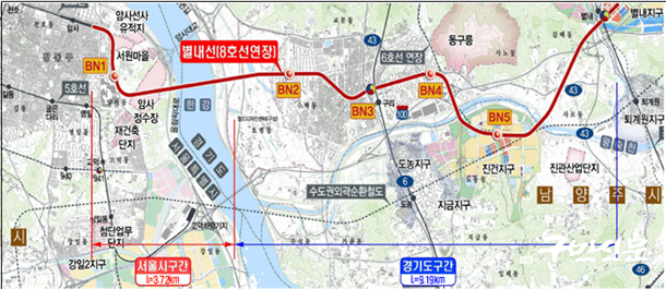 ¼öµµ±Ç µ¿ºÏºÎ Áö¿ª ´ëÁß±³Åë ÆíÀÇÁõÁøÀ» À§ÇØ ÁýÇàµÈ º°³»¼±(8È£¼± ¿¬Àå) »ç¾÷Àº °µ¿±¸ ¾Ï»çµ¿(8È£¼± ¾Ï»ç¿ª)~ÇѰ(¼¿ï½Ã°è)~±¸¸®½Ã ÅäÆòµ¿À» ÀÕ´Â ÃÑ »ç¾÷ºñ 5,484¾ï ¿ø ±Ô¸ðÀÇ ÁöÇÏö 8È£¼± ¿¬Àå »ç¾÷ÀÌ´Ù.