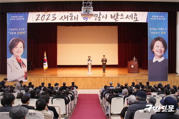 dz¿ä¿Í ÁöÇý¸¦ »ó¡ÇÏ´Â °è¹¦³â »õÇØÀÇ ½ÃÀÛÀ» Áֹεé°ú µÎ¼ÕÀ» ¸¶ÁÖÀâ°í Èñ¸ÁÂù ¹ß°ÉÀ½À» ³»µó´Â Áø¼±¹Ì ±¹È¸ÀÇ¿ø(°­µ¿°©)ÀÇ 2023³âµµ ½Å³âÀλçȸ°¡ 14ÀÏ °­µ¿±¸¹Îȸ°ü¿¡¼­ ¿­·È´Ù.
