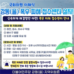 ÀÌÇØ½Ä ±¹È¸ÀÇ¿ø(°­µ¿±¸ À»), Æø¿ìÇÇÇØ Á¢¼ö¼¾ÅÍ ¿î¿µ°³½Ã