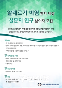 °­µ¿°æÈñ´ëº´¿ø, ¾Ë·¹¸£±âºñ¿° ¼³¹®Áö ¿¬±¸ Âü¿©ÀÚ ¸ðÁý