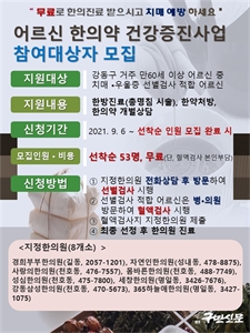 °­µ¿±¸ ¾î¸£½Å ÇÑÀÇ¾à °Ç°­ÁõÁø»ç¾÷ È«º¸¹° °­µ¿±¸(±¸Ã»Àå ÀÌÁ¤ÈÆ)´Â ¸¸ 60¼¼ ÀÌ»ó ÀÎÁöÀúÇÏ ¾î¸£½ÅÀ» ´ë»óÀ¸·Î ÃѸíħ, ÇѾàÅõ¾à ¹× »ó´ã µî Ç¥ÁØÈ­µÈ ÇÑÀǾà...