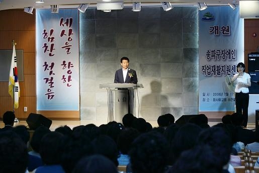 ¹ÚÀç¹® ÀÇÀåÀº Ãà»çÀ» ÅëÇØ ¡°Á÷¾÷ÀçȰ ¹× Ãë¾÷¾Ë¼±°ú Á÷¾÷ÀûÀÀÈÆ·ÃÀ» Áö¿øÇÏ´Â ¡®¼ÛÆÄ Àå¾ÖÀÎ Á÷¾÷ÀçȰ Áö¿ø¼¾ÅÍ¡¯´Â Àå¾ÖÀÎÀÌ °¡Áö°í ÀÖ´Â ´É·ÂÀ» Çâ»ó½Ã۰í ÀáÀç´É·ÂÀ» °³¹ßÇÏ¿© »çȸ¿¡ È¿À²ÀûÀ¸·Î ÀûÀÀÇÒ ¼ö ÀÖµµ·Ï ÇÒ »Ó¸¸ ¾Æ´Ï¶ó »çȸ¿¡ Áß¿äÇÑ Á¸ÀçÀÓÀ» ÀνÄÇϵµ·Ï ÇÏ¿© ±¹°¡ ¹ßÀü¿¡ ±â¿©ÇÏ°Ô µÉ °ÍÀÌ´Ù.¡±¶ó¸ç, ¡°¼ÛÆÄ±¸ÀÇȸµµ Àå¾ÖÀÎ ¿©·¯ºÐµéÀÌ Èñ¸ÁÀ» °®°í ÇÔ²² ´õºÒ¾î »ì¾Æ°¡´Â ¾Æ¸§´Ù¿î »çȸ¸¦ ¸¸µé±â À§ÇØ ³ë·ÂÇϰڴÙ.¡±°í ¸»Çß´Ù.