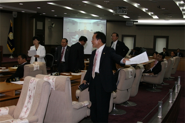 °µ¿±¸ÀÇȸ ÀÇ¿øµéÀÌ ±¸ÀÇÀå ¼±°Å¸¦ µÎ°í Çѳª¶ó´ç °©Áö±¸´ç°ú À»Áö±¸´çÀÌ °¥µîÀ» ºúÀ¸¸é¼ ¹ýÀû ´ëÀÀ Á¶Ä¡ µîÀ¸·Î ÆÄÇàÀ¸·Î Ä¡´Ý°í ÀÖ´Ù.