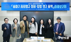 ¼ÛÆÄ±¸ ÀÇ¿ø¿¬±¸´Üü ¡®¼ÛÆÄÀÇÁ¤¿¬±¸È¸¡¯(ȸÀå Á¤ÁÖ¸®)°¡ Áö³­ 12¿ù 19ÀÏ ¡¸¼ÛÆÄ±¸ ÀÚÄ¡¹ý±Ô Á¤ºñ¡¤ÀÔ¹ý ¿¬±¸¡¹ ¿ë¿ªÀÇ ÃÖÁ¾º¸°íȸ¸¦ ¸¶ÃÆ´Ù. 10¸íÀÇ ÀÇ¿øÀ¸·Î...