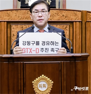 ¼­¿ï½Ã °­µ¿±¸ÀÇȸ(ÀÇÀå Á¶µ¿Å¹)°¡ Áö³­ 6ÀÏ °³ÃÖµÈ Á¦300ȸ ÀÓ½Ãȸ Á¦1Â÷ º»È¸ÀÇ¿¡¼­ ¡®¼­¿ïƯº°½Ã °­µ¿±¸¸¦ °æÀ¯ÇÏ´Â ±¤¿ª±ÞÇàöµµ(GTX-D)³ë¼± ÃßÁø ÃË...