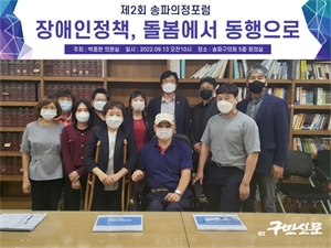 ¹ÚÁ¾Çö ¼­¿ï ¼ÛÆÄ±¸ÀÇȸ ÀÇ¿ø(°¡¶ô2¡¤¹®Á¤1)Àº 13ÀÏ ¿ÀÀü 10½Ã ¼ÛÆÄ±¸ÀÇȸ¿¡¼­ ¡®Àå¾ÖÀÎ Á¤Ã¥, µ¹º½¿¡¼­ µ¿ÇàÀ¸·Î¡¯¶ó´Â ÁÖÁ¦·Î Æ÷·³À» °³ÃÖÇß´Ù. À̹ø Æ÷·³...