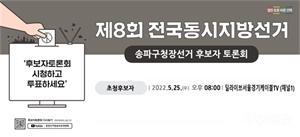 ¼ÛÆÄ±¸¼±°Å¹æ¼ÛÅä·ÐÀ§¿øÈ¸(À§¿øÀå Á¤µµ¿µ)´Â 6¿ù 1ÀÏ ½Ç½ÃÇÏ´Â ¼ÛÆÄ±¸Ã»Àå¼±°ÅÀÇ Èĺ¸ÀÚ Åä·Ðȸ¸¦ 5¿ù 25ÀÏ(¼ö) 20½ÃºÎÅÍ¡°¢ßµô¶óÀ̺꼭¿ï°æ±âÄÉÀ̺íTV ä³Î ...