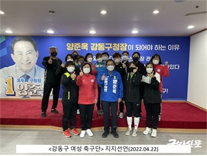 ¿À´Â 6¡¤1 Áö¹æ¼±°Å¿¡ ´õºÒ¾î¹ÎÁÖ´ç ¼Ò¼ÓÀ¸·Î °­µ¿±¸Ã»Àå¿¡ Ã⸶ÇÑ ¾çÁØ¿í ¿¹ºñÈĺ¸¿¡ ´ëÇÑ ÁöÁö¼±¾ðÀÌ À̾îÁö°í ÀÖ´Ù. 4¿ù 22ÀÏ <°­µ¿±¸ ¿©¼º Ã౸´Ü&...