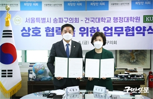 ¼ÛÆÄ±¸ÀÇȸ(ÀÇÀå ÀÌȲ¼ö)´Â Áö³­ 5ÀÏ(±Ý) ¼ÛÆÄ±¸ÀÇȸ ÀÇÀå½Ç¿¡¼­ °Ç±¹´ëÇб³ ÇàÁ¤´ëÇпø(ÇàÁ¤´ëÇпøÀå °ûÁø¿µ)°ú ¾÷¹« Çù¾à½ÄÀ» ü°áÇß´Ù. ¼ÛÆÄ±¸ÀÇȸ´Â 2022...