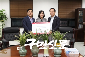 [±¸¹Î½Å¹® ±Ç°æÈ£ ±âÀÚ]°­µ¿±¸ÀÇȸ ÀÇÀå´Ü(ÀÇÀå ÀÓÀÎÅÃ, ºÎÀÇÀå Á¦°©¼·)ÀÌ ´ç¼± ÃàÇÏ·Î ¹ÞÀº 100¿©°³ÀÇ È­ºÐÀ» Çѱ¹»õ»ý¸íº¹ÁöÀç´Ü¿¡ ±âºÎÇÏ¿© µû¶æÇÑ ³ª´®¿îµ¿...